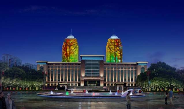 ▲燈光大廈雙子塔——外墻投影秀