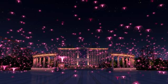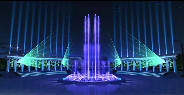 ▲廣場羅馬柱音樂噴泉——浮光溢彩