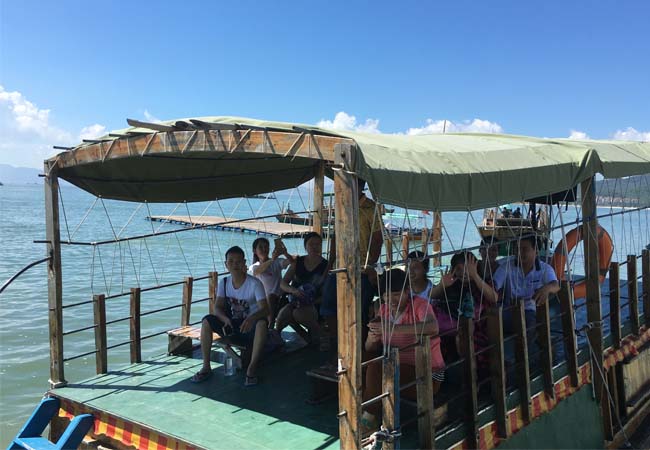 第一天行程里,從中山光臣照明總部出發(fā)需要3個小時的車程,一路上大家都在歡聲笑語中度過。到達(dá)目的地后,填飽肚子才有力氣玩啊~飽餐一頓之后我們就奔上了美麗誘人的白色沙灘、藍(lán)色大海~出海捕魚啦~
