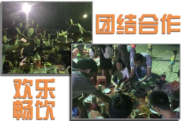 聽說海灘和燒烤更配哦!沒錯,是絕配!我們的晚餐是別出心裁的沙灘燒烤。在沙灘上燒烤給我們布置的任務(wù)是:“自己動手豐衣足食”。很明顯的看出來,大家都在分工合作完成屬于我們的美味晚餐。弱弱的說一句:小編是烤肉高手喔~